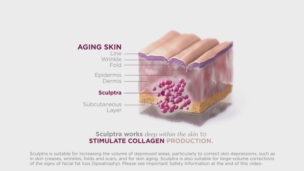 Bei SCULPTRA® handelt es sich um eine Polymilchsäure, die im Gegensatz zu Fillern wie Hyaluron als Biostimulator wirkt. Das bedeutet, dass es die Fähigkeit besitzt, die Zellbildung im Körper anzuregen. Dadurch schafft SCULPTRA® die strukturelle Grundlage zur Wiederherstellung eines jüngeren Aussehens. Darüber hinaus verbessert es die Hautqualität, Volumen und Spannkraft.